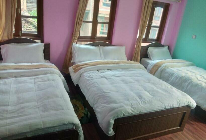 Annapurna Guest House And Rooftop Restaurant is located at Taumadhi 5, Bhaktapur 3, in the historic city of Bhaktapur, Nepal. This accommodation offers a unique experience with a rooftop restaurant, providing stunning views of the surrounding area. Bhaktapur is known for its rich cultural heritage, ancient temples, and traditional Newari architecture, making it a popular destination for travelers seeking to explore Nepal's history and artistry. Enjoy a comfortable stay while immersing yourself in the vibrant local culture.