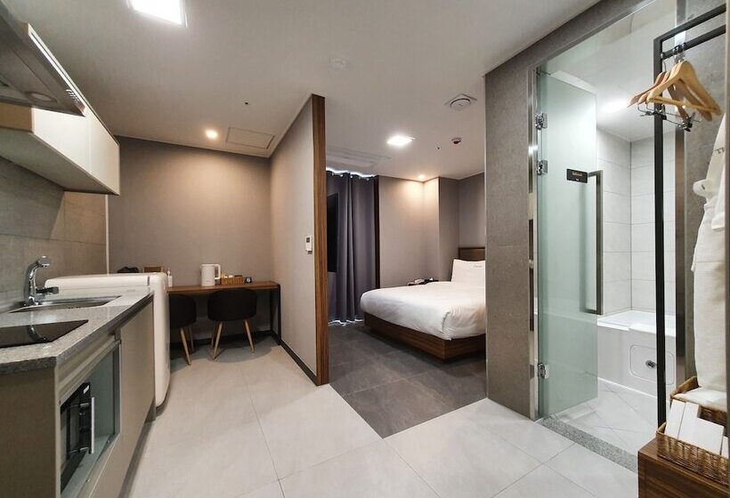 The Muse Hotel & Residence is located at 4 Haesong 3 Ro, Ilgwang Myeon, Gijang Gun, in Busan, South Korea. This accommodation offers a comfortable stay in a scenic area, ideal for travelers seeking relaxation and exploration. Busan, known for its beautiful beaches, vibrant culture, and delicious seafood, provides a perfect backdrop for your visit. Enjoy the local attractions and the stunning coastal views while staying at The Muse Hotel & Residence.